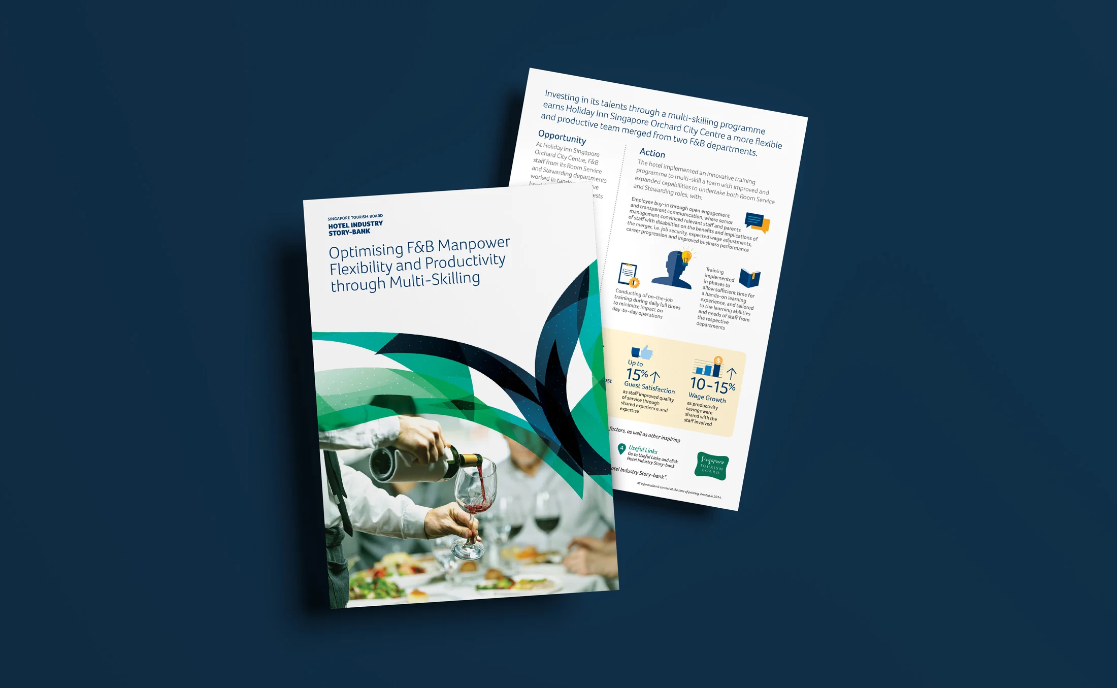 The Singapore Tourism Board’s Hotel Industry Story-bank was created to document and share real productivity innovations from hotels across Singapore — stories worth telling, and worth reading. Leap was engaged to design and produce the full publication suite: a series of individual case study brochures and a folder to house them, all under the overarching theme, Innovating for Growth.
